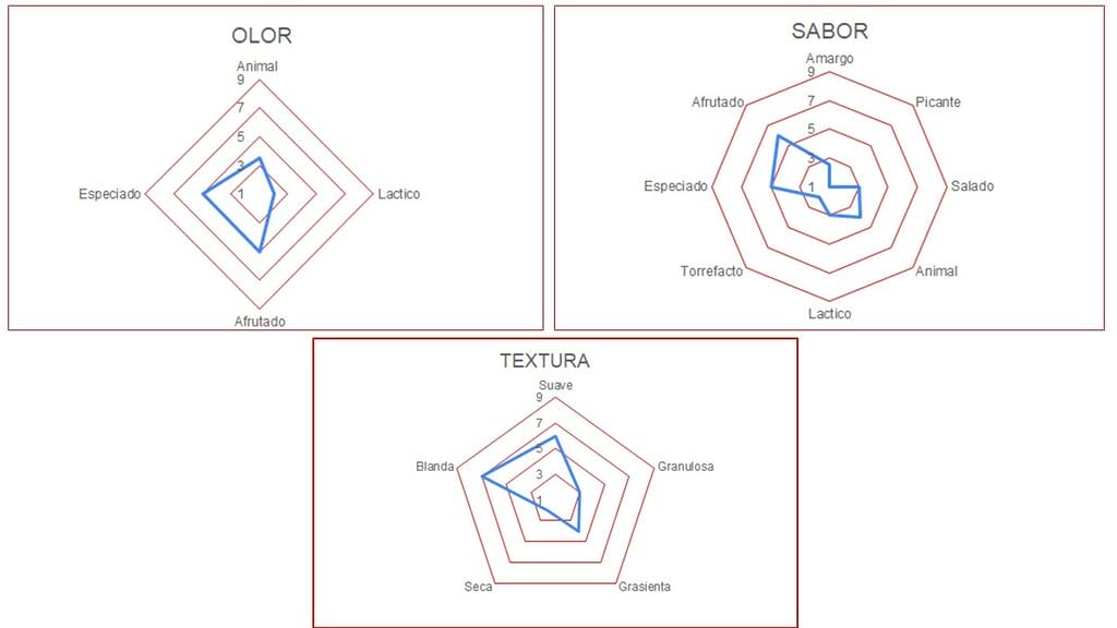 Tomando como base los datos anteriores solo se han analizado las características organolépticas que más inciden en el consumidor: olor, sabor y textura.
